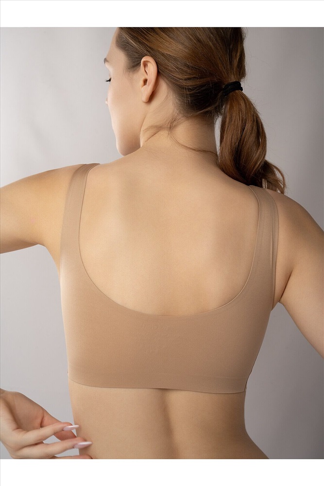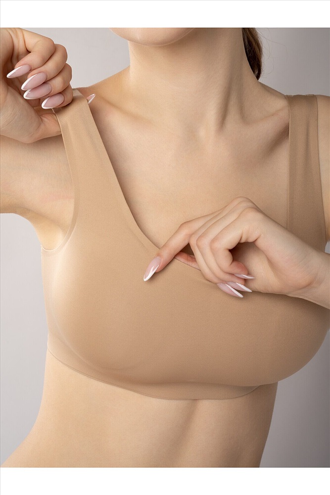 Бежевый бюстгальтер-топ без косточек. Современный бежевый бюстгальтер выполнен из мягкого эластичного материала, обеспечивающего комфортную посадку и свободу движений. Модель не имеет каркасных косточек и застёжек, что делает её максимально удобной для повседневной носки. Особенности: ✔ Широкие эластичные бретели – не натирают и не сползают, равномерно распределяют нагрузку ✔ Бесшовная технология – незаметен под одеждой, не оставляет следов на коже ✔ Мягкая, эластичная чашка – поддерживает грудь и сохраняет естественный силуэт ✔ Универсальный бежевый оттенок – подходит для любого гардероба и незаметен под светлой одеждой ✔ Лёгкая и дышащая ткань – комфортна даже в течение всего дня Идеальный выбор для тех, кто ценит комфорт, минимализм и современный стиль. Параметры модели на фото: 90-62-92. Рост модели на фото: 175 см