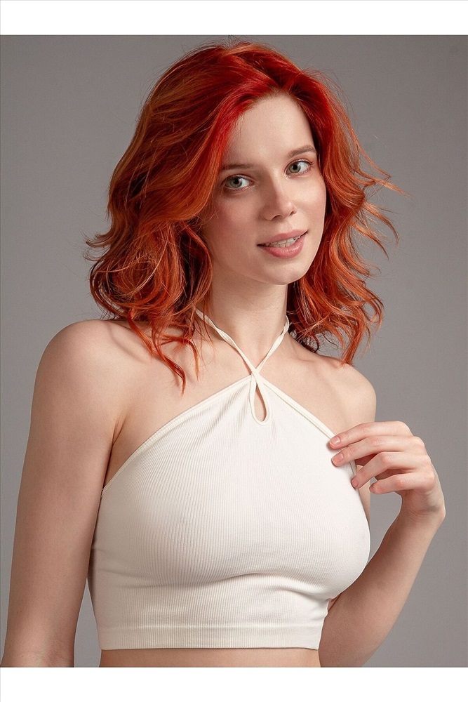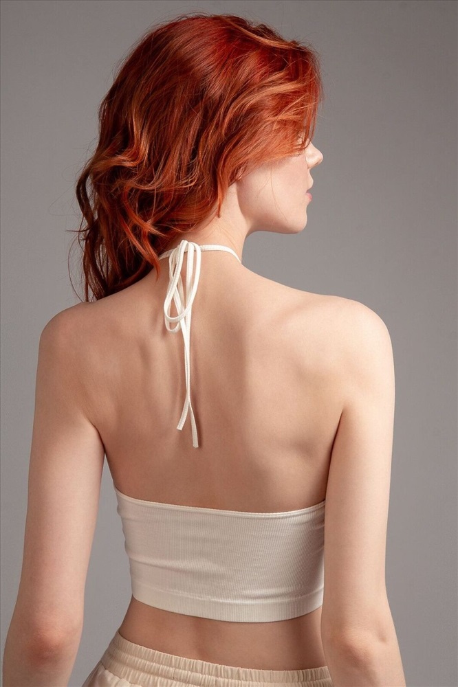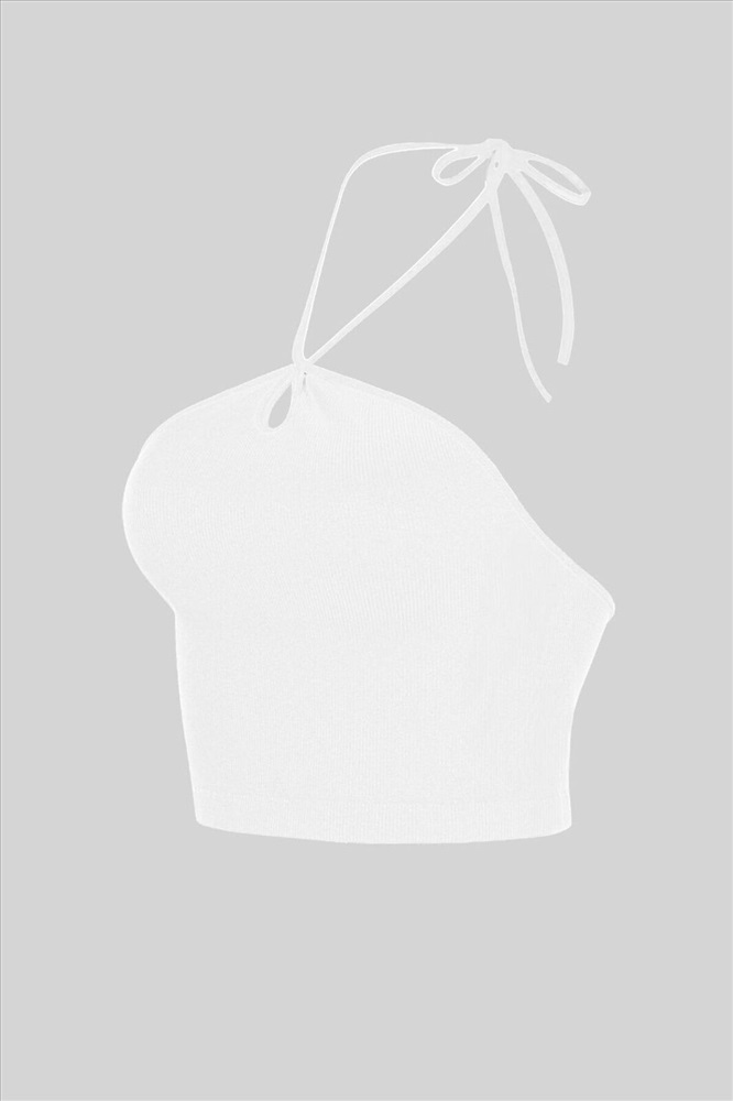 Страна производства: Китай Топ из полиамида, белого цвета, в рубчик, на завязках, без рукавов, укороченная.