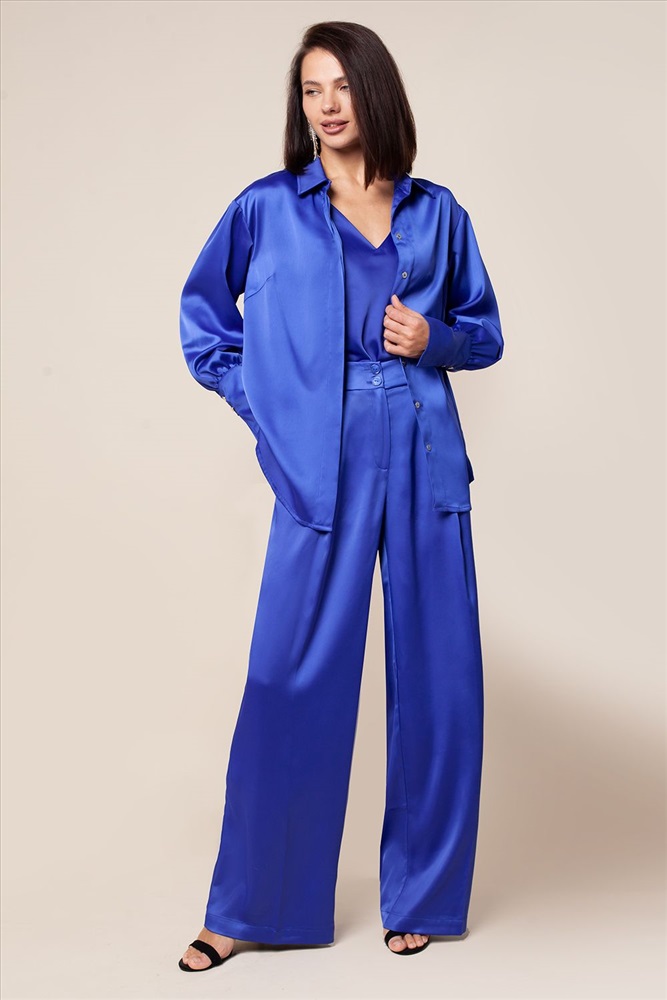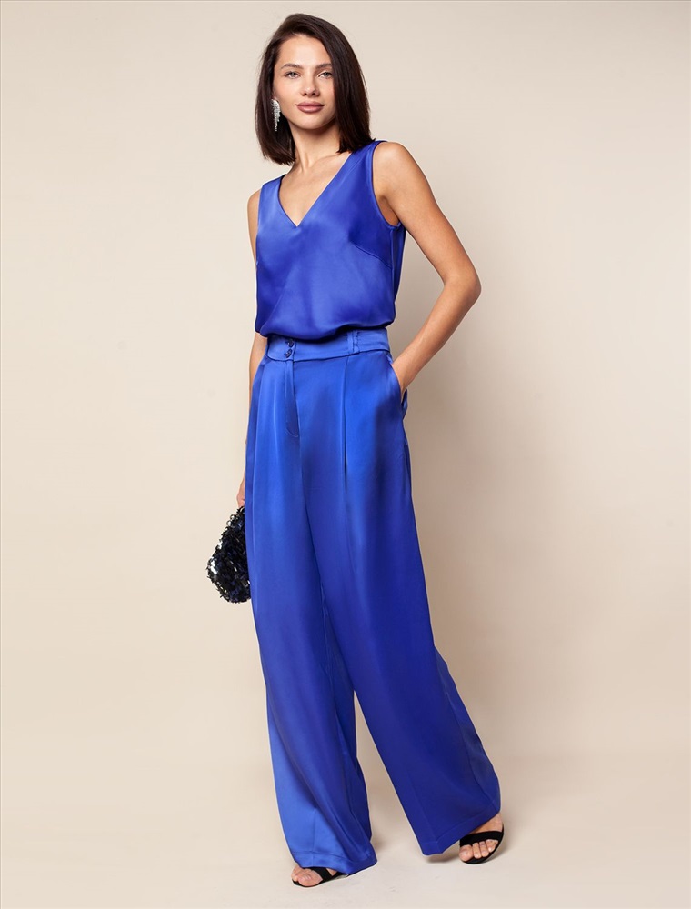 Топ с V-вырезом выполнен из тончайших нитей плотного сатина, плетение которых создает полуматовый блеск, напоминающий натуральный шёлк. Модель, скроенная по косой мягко, струится по телу и почти не мнется. Совет стилиста: сочетайте топ в костюме вместе с брюками D24.534 и юбкой D26.461 чтобы создать роскошный праздничный образ, или используйте как яркий акцент в базовом гардеробе, с вязаными вещами, денимом и эко-кожей.