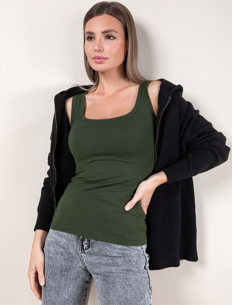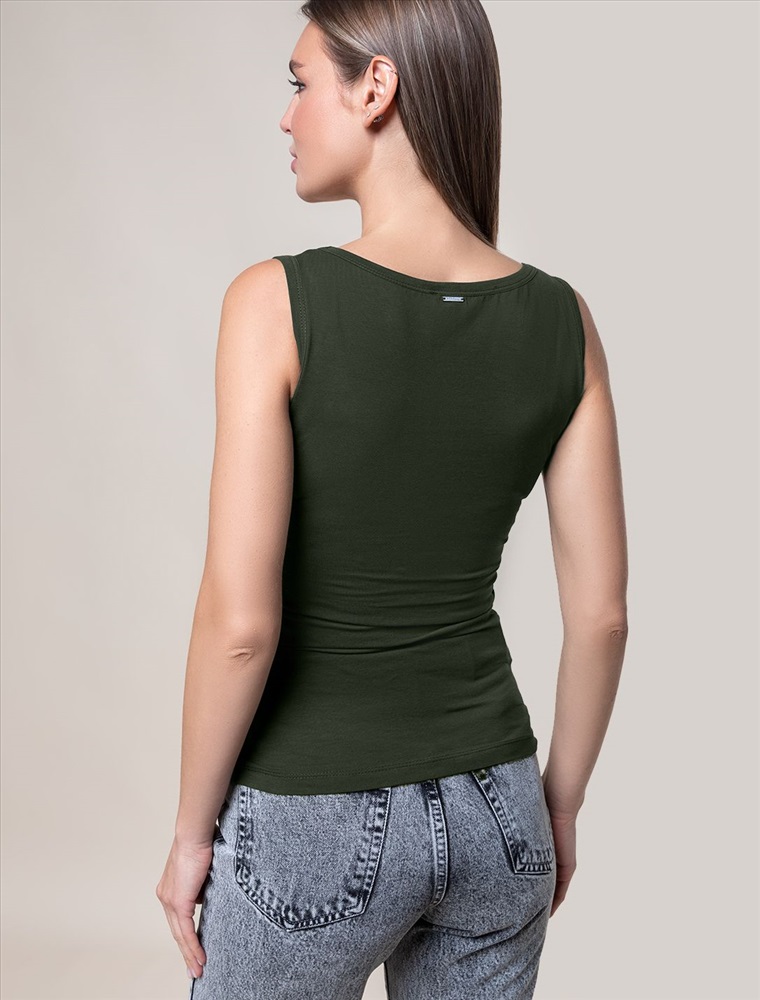 Стильный и женственный топ цвета хаки из премиального хлопка станет отличным дополнением вашего гардероба. Актуальный дизайн и однотонное исполнение позволяют легко комбинировать его как с деловым костюмом, так и с повседневными вещами. Облегающий силуэт идеально подчеркивает фигуру, не сковывая движений, обеспечивая комфорт на весь день. Дышащая ткань с добавлением эластана приятно прилегает к телу и прекрасно тянется, что делает изделие подходящим для девушек и женщин всех возрастов.