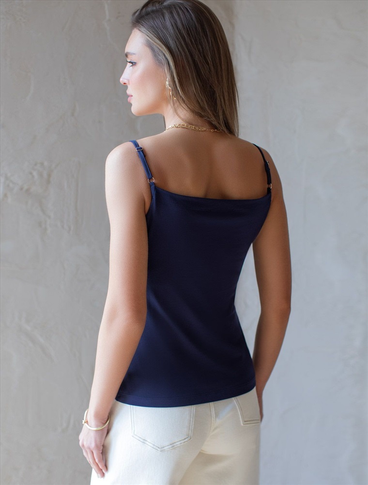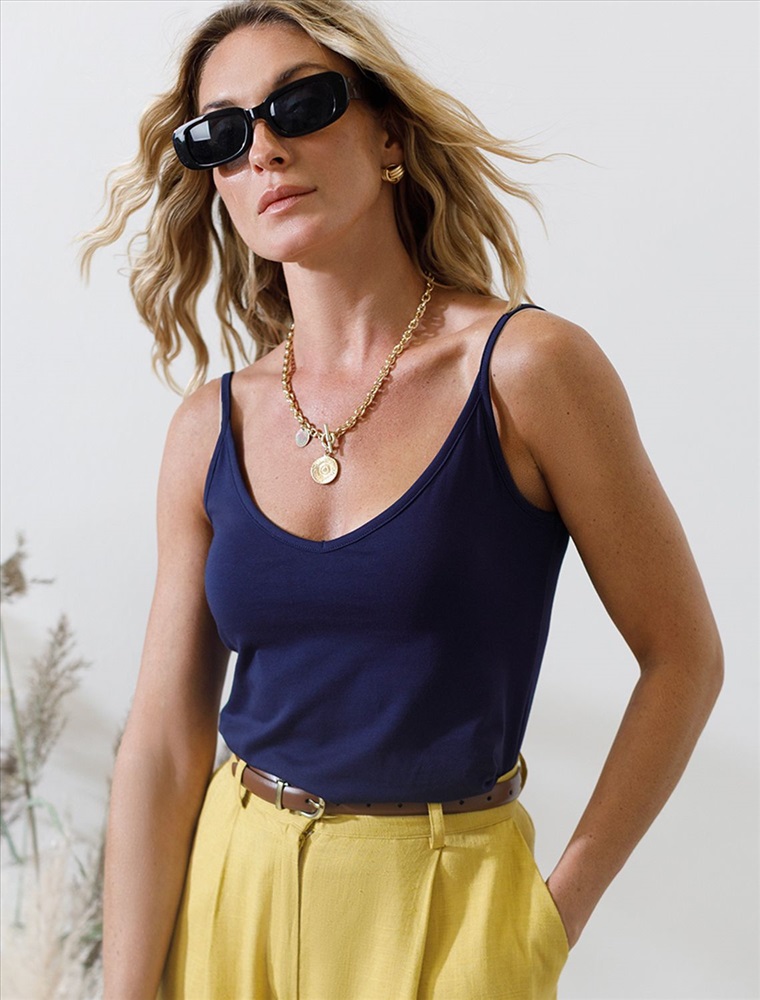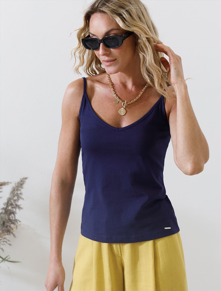Плотность: 140 Г/м2 Параметры модели на первом фото: Рост 170, бюст 89, талия 63, бедра 92 Размер товара на первом фото: 42 Топ с V-вырезом выполнен из премиального хлопка. Модель дополнена регулируемыми бретелями, позволяющими носить изделие на нужном уровне. Эластичный материал гарантирует комфорт и формоустойчивость. Из украшений металлический логотип бренда. Комментарии к товару