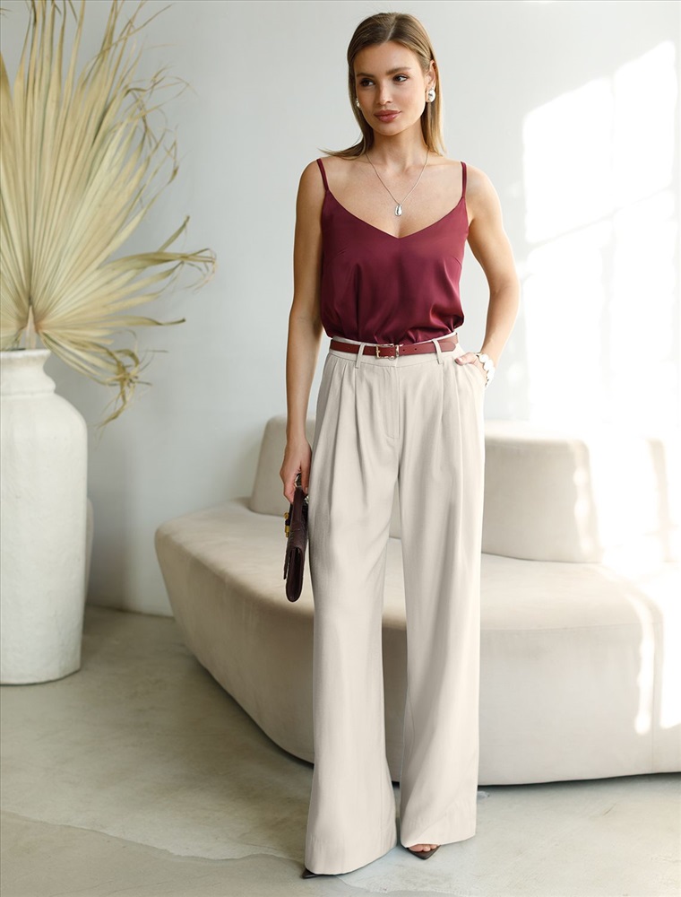 Элегантный топ винного цвета с регулируемыми лямками выполнен из сатиновой ткани премиального качества, сочетающей полиэстер и эластан в составе. Этот уникальный дуэт материалов обеспечивает комфортную посадку топа. Универсальный крой делает топ идеальным базовым элементом как для повседневных образов с джинсами или юбкой, так и для вечерних луков под жакет или кардиган.