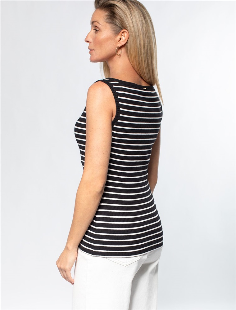 Параметры модели на первом фото: Рост 170, бюст 89, талия 63, бедра 92 Топ выполнен из трикотажа в широкий рубчик. Премиальное качество хлопковых волокон и наличие эластана в составе изделия, обеспечивают абсолютный комфорт, не сковывая движений. Изделие обладает хорошей формоустойчивостью и надолго сохранит свой безупречный внешний вид. Металлический логотип бренда.
