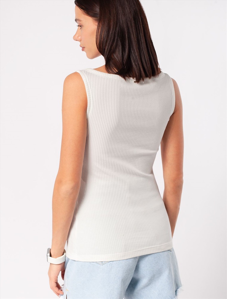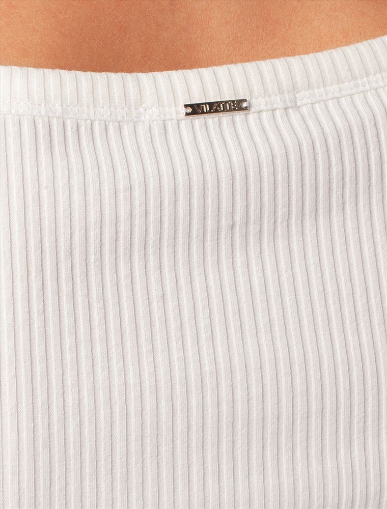 Топ выполнен из трикотажа в широкий рубчик. Эластичный хлопковый трикотаж идеально сидит по фигуре, не сковывает движений и очень комфортный в носке. Фактура вертикальных полос визуально стройнит и вытягивает силуэт. Базовое изделие хорошо впишется в любой гардероб. Идеально подходит для многослойных образов в базовый гардероб.