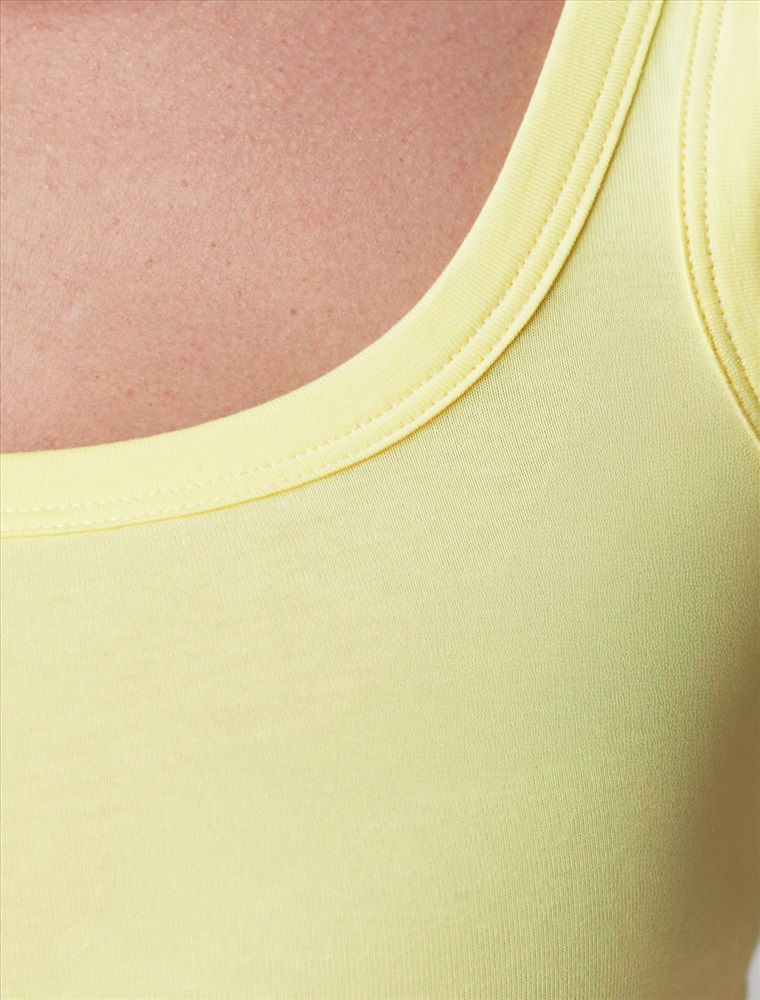 Стильный и женственный топ лимонного цвета из премиального хлопка станет отличным дополнением вашего гардероба. Актуальный дизайн и однотонное исполнение позволяют легко комбинировать его как с деловым костюмом, так и с повседневными вещами. Облегающий силуэт идеально подчеркивает фигуру, не сковывая движений, обеспечивая комфорт на весь день. Дышащая ткань с добавлением эластана приятно прилегает к телу и прекрасно тянется, что делает изделие подходящим для девушек и женщин всех возрастов.