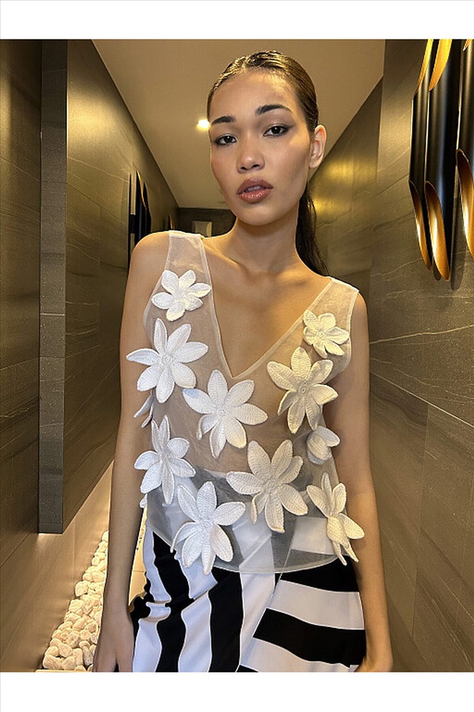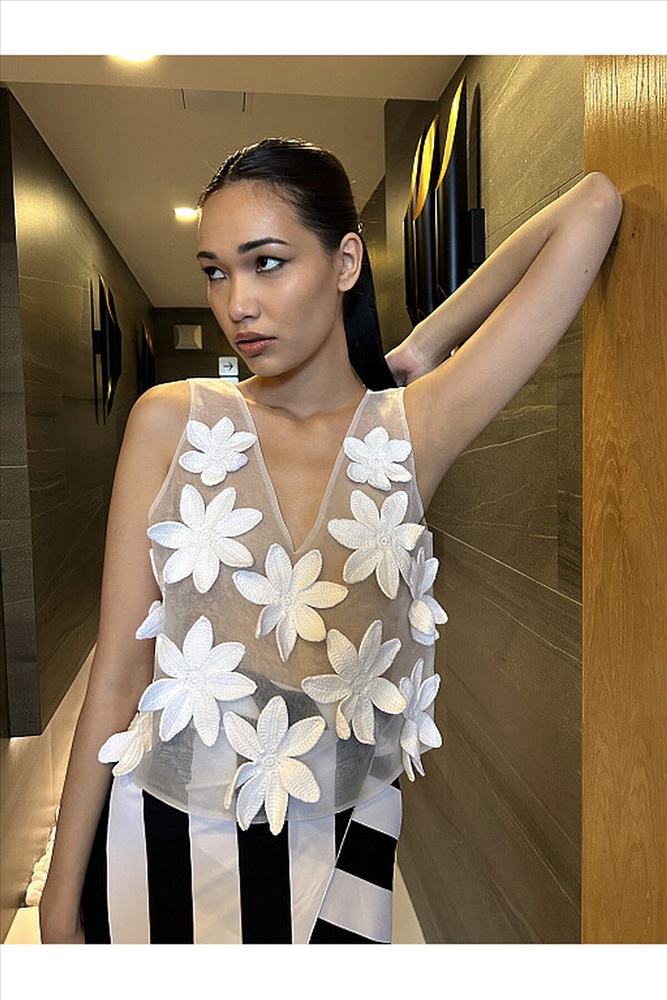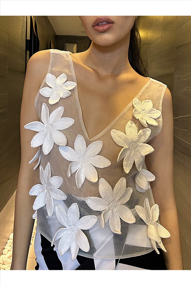 Страна производства: Китай Женский пляжный топ выполнен из белой органзы, сложенной в два слоя. Спереди украшен изящными цветами из белого хлопка, вязаными крючком вручную. Потрясающе красивая вещь будет любимой изюминкой летнего гардероба.