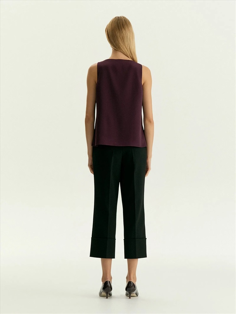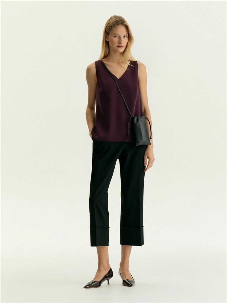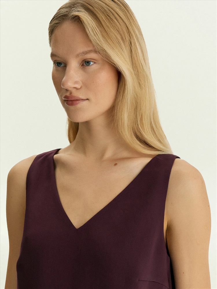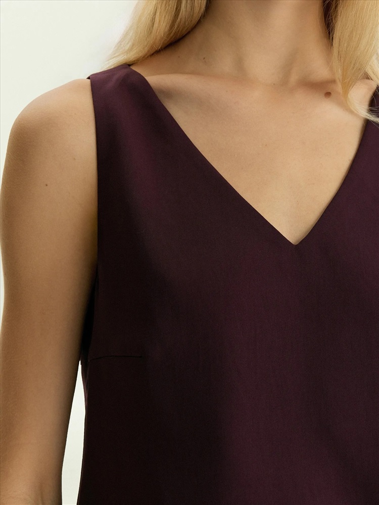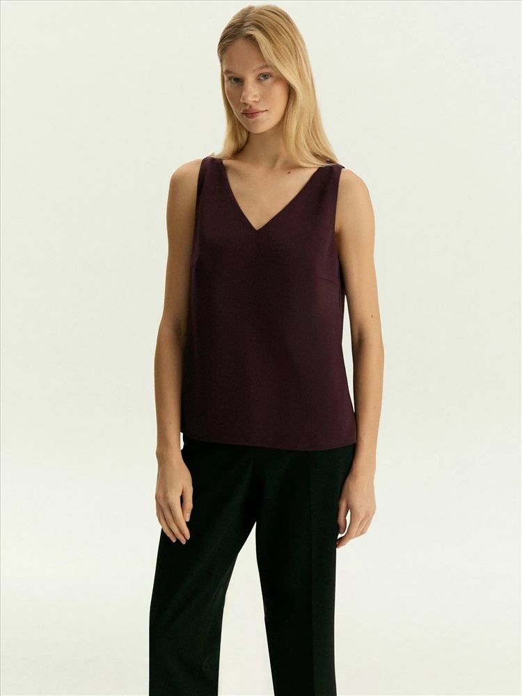 Стильный топ в цвете инжира разбавит повседневные образы модным цветовым акцентом. Этот оттенок решает сразу три задачи в образе: делает его дорогим и благородным, держит вровень с трендами сезона, встраивает в деловой дресс-код с сохранением индивидуального стиля. Топ удобен для того, чтобы носить его под жакеты. Имеет проймы комфортной глубины. Прямая модель на широких бретелях дополнена универсальным V-вырезом. Топ сделан без подкладки.