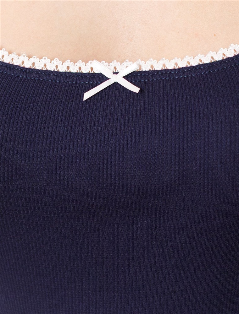 Плотность: 150 Г/м2 Топ темно-синего цвета с U вырезом выполнен из фактурного трикотажа в рубчик. Особенность полотна - трикотаж кашкорсе удивительной мягкости, намного мягче стандартных вариантов, подходящий для расслабленных домашних и пижамных образов. Хлопок обеспечивает максимальный комфорт даже в течение длительного времени и позволяет коже дышать, а эластан в составе позволяет ткани подстраиваться под особенности фигуры. Женственная форма U-выреза красиво подчеркивает линию шеи и ключицы, а отделка нежным контрастным кружевом добавляет нотку романтичности и придает особый шарм. Майка подойдет для девушек и женщин, которые ценят уют и удобство. Нежная ткань приятна к телу, не вызывает дискомфорта и позволяет коже дышать, что особенно важно в повседневной жизни. Рубчик визуально вытягивает силуэт и делает фигуру более стройной. Разнообразие размеров позволяет выбрать подходящий вариант для любых параметров, в том числе на большие размеры. Этот красивый домашний топ практичен и незаменим для тех, кто ищет качественные вещи на каждый день. Рекомендуем сочетать с артикулами: D40.001, D40.002, D40.003, D48.011, D48.012, D44.160, D44.161, D44.163 Комментарии к товару