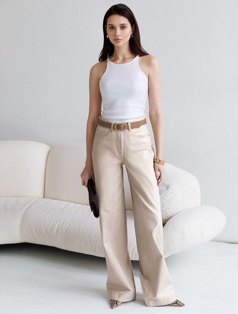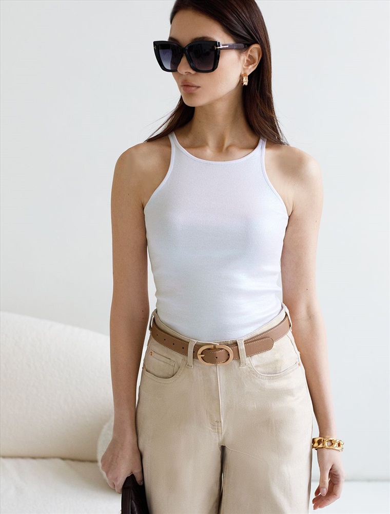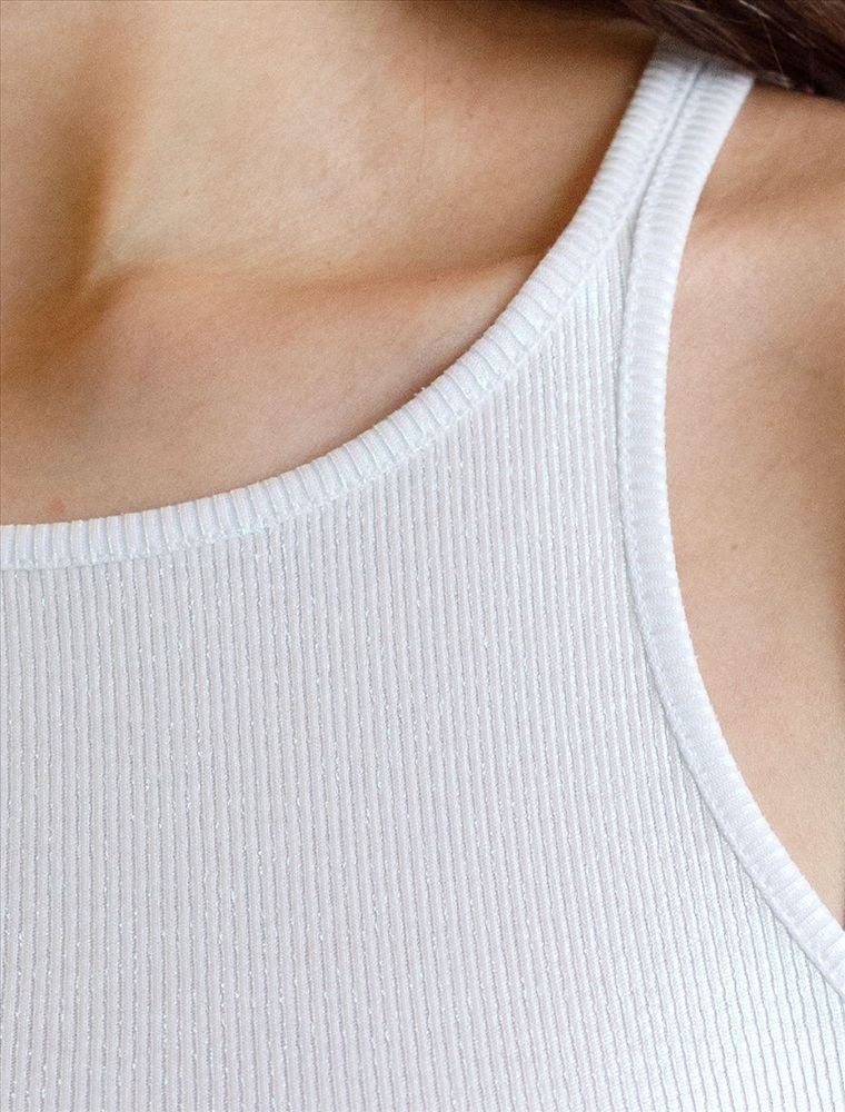 Эффектный топ перламутрового цвета из мягкого хлопка с эластаном представлен в стильном исполнении с матовым покрытием металлик. Мелкий рубчик визуально вытягивает силуэт и подчеркивает фигуру, делая образ более стройным и аккуратным. Круглый ворот и суженные лямки акцентируют внимание на линии ключиц, делая образ утонченным и изысканным, Благодаря деликатному блеску топ подходит для тех, кто ценит утонченность и стремится добавить в образ немного сияния без перебора - это отличный вариант топа для любительниц минимализма.