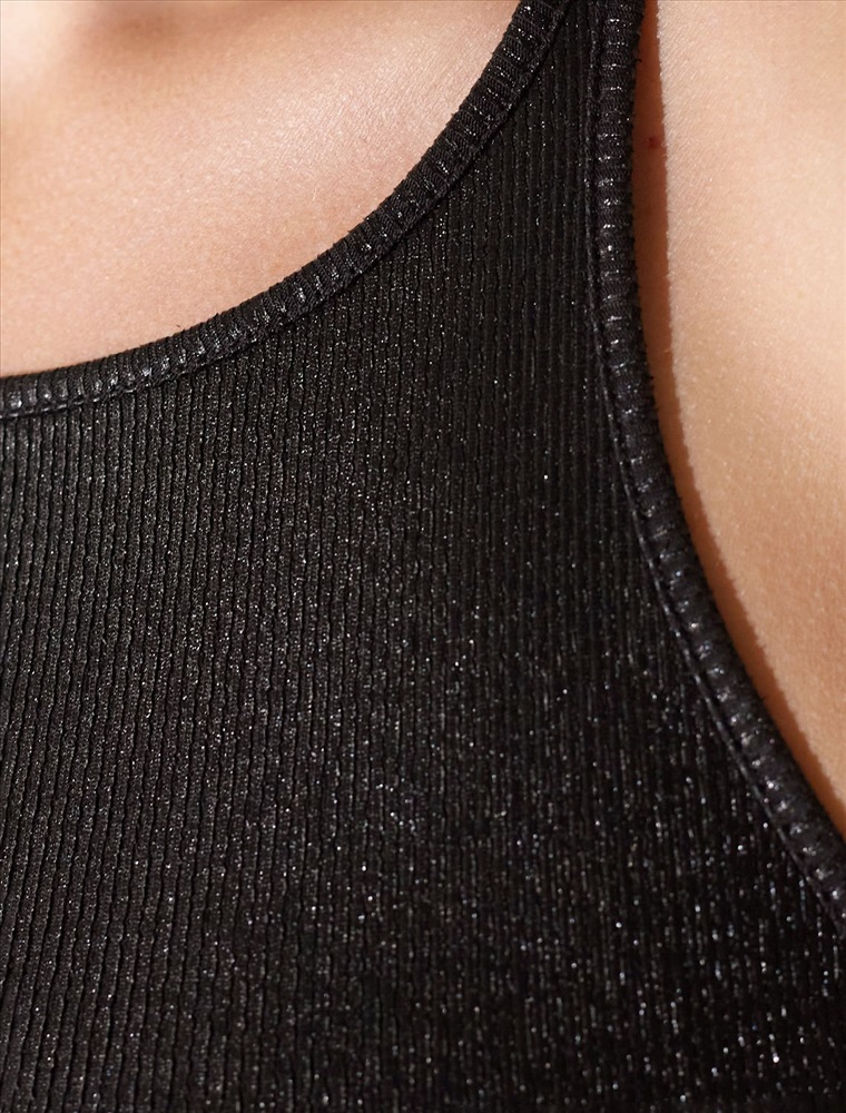 Топ с закрытым декольте из хлопка с эластаном в рубчик с матовым покрытием металлик