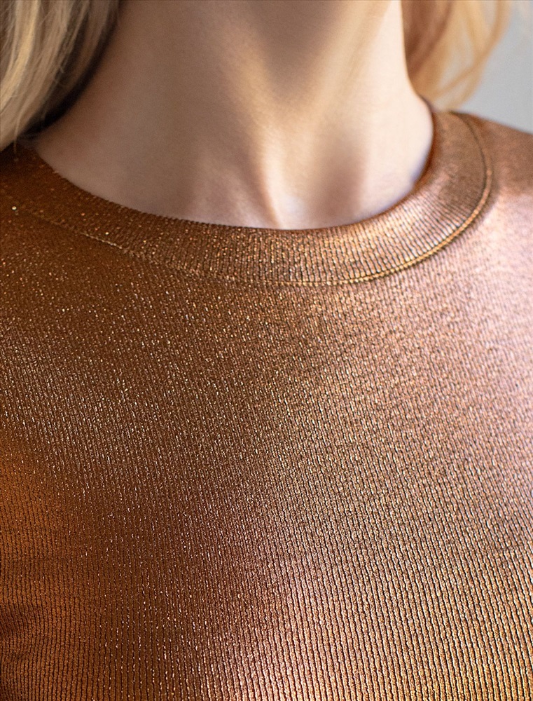 Плотность: 175 Г/м2 Эффектный топ кофейного цвета с закрытым декольте идеально подходит для офиса, вечерних мероприятий и повседневной носки. Качественный материал содержит натуральный хлопок, благодаря чему ткань мягкая, дышащая и приятная на ощупь. Добавление эластана обеспечивает эластичность и позволяет изделию хорошо садиться на любую фигуру, в том числе и большие размеры. Ткань в мелкий рубчик вытягивает силуэт. Формоустойчивость материала сохраняет аккуратный внешний облик даже после многочисленных стирок. Трендовый матовый металлизированный эффект создает сияющий бронзовый блеск с серебристыми вкраплениями без излишней яркости — это делает топ нарядным и красивым как для праздничного события, так и для повседневной носки в комплекте с деловым костюмом или джинсами. Широкие лямки обеспечивают дополнительный комфорт в течение всего дня. Круглый ворот подчеркивает линию шеи, добавляя образу изысканности. Комментарии к товару