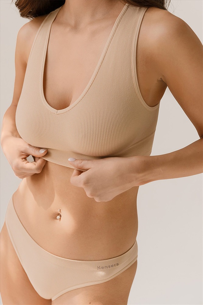 ID товара: 1182300 Состав: 92% Полиамид, 8% Эластан Сезон: Демисезон Основная ткань: Полиамид Модель лифа/бюстгальтера: Топ Страна бренда: Россия Страна производства: Россия Майка-топ из эластичного рибового полотна в вертикальынй рубчик. Без подклада. Без каркасов и боковых корсетных вставок. Брендированная лента под грудью. Комментарии к товару