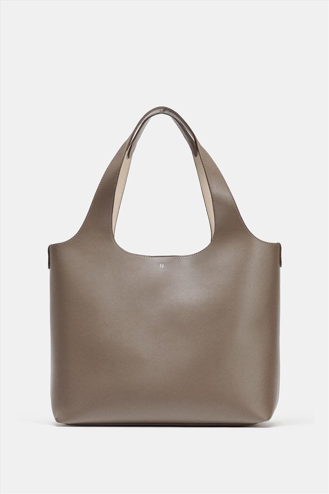 Shoulder tote bag. Double wide straps. Internal pocket with metal zip fastening. Magnetic clasp closure. COMPOSITION, CARE & ORIGIN COMPOSITION OUTER SHELL 100% polyurethane LINING 100% polyurethane CARE Caring for your garments to extend their useful life. Simple steps like cleaning your items with a dry cotton cloth or a soft brush, depending on the characteristics of the product, can help you care for it.