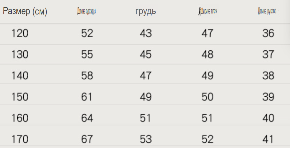 Размер: 120, 130, 140, 150, 160, 170
