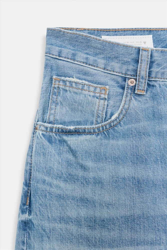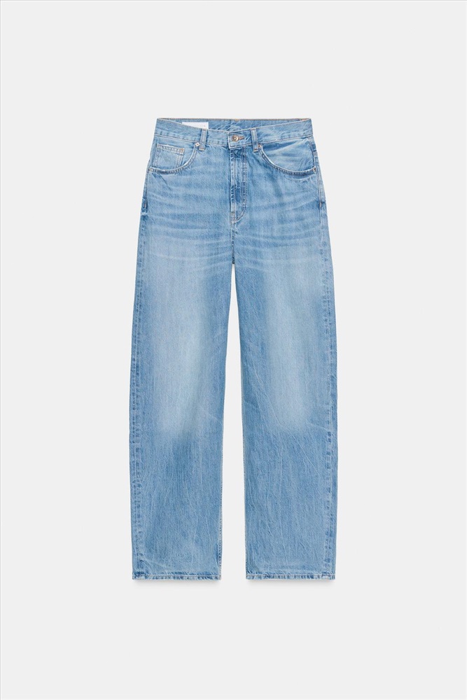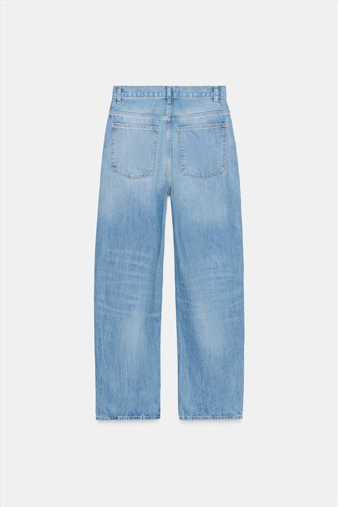 High-waist jeans with belt loops and five pockets. Wide straight leg. Front zip fly and metal top button fastening.
