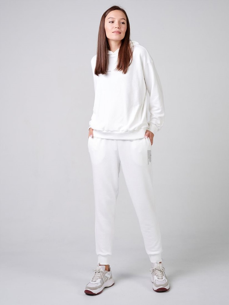 Длина: Худи 62 см, брюки 102 см Спортивный костюм для женщин. Толстовка с длинными рукавами и капюшоном, два боковых кармана в швах изделия, детали в рубчик в тон. Брюки со средней посадкой, эластичный пояс на регулируемых шнурках, боковые карманы, эластичные манжеты. Текстовый принт "Защити Планету" Изделия выполнены из петельчатого футера трехнитки высокого качества «пенье» 320г/м2. Трикотаж качества «пенье» отличается высокими износостойкими качествами и внешним видом. Перед  раскроем ткани проходят декатировку (специальная обработка паром), чтобы избежать  деформацию изделий при использовании и усадки после стирки. Принты нанесены при помощи шелкографии или прямой печати, после проходят термическую обработку, что придает рисунку максимальную износостойкость и позволяет сохранять яркость цвета после стирки.