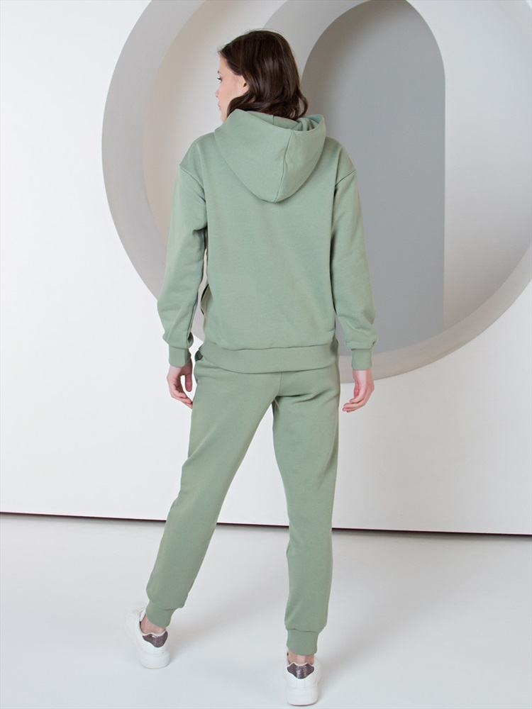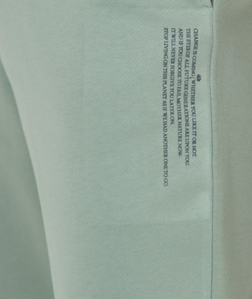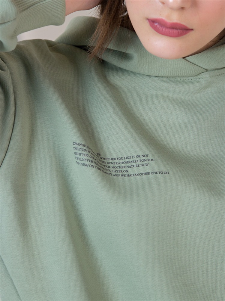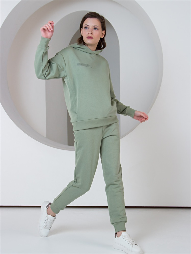 Длина: Худи 62 см, брюки 102 см Спортивный костюм для женщин. Толстовка с длинными рукавами и капюшоном, два боковых кармана в швах изделия, детали в рубчик в тон. Брюки со средней посадкой, эластичный пояс на регулируемых шнурках, боковые карманы, эластичные манжеты. Текстовый принт "Защити Планету" Изделия выполнены из петельчатого футера трехнитки высокого качества «пенье» 320г/м2. Трикотаж качества «пенье» отличается высокими износостойкими качествами и внешним видом. Перед  раскроем ткани проходят декатировку (специальная обработка паром), чтобы избежать  деформацию изделий при использовании и усадки после стирки. Принты нанесены при помощи шелкографии или прямой печати, после проходят термическую обработку, что придает рисунку максимальную износостойкость и позволяет сохранять яркость цвета после стирки.