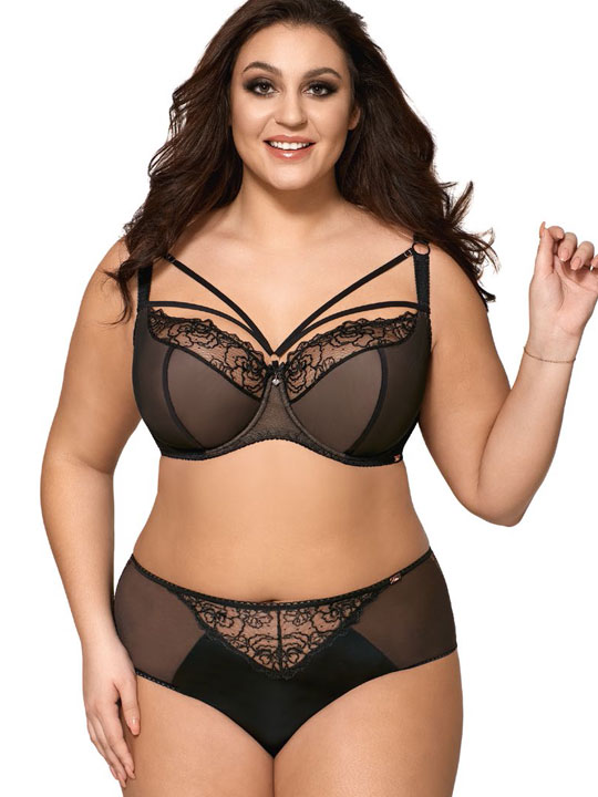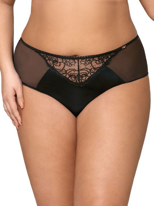 Состав: ткань- 83% полиамид - 17% эластан, ластовица- 100% хлопок Трусики слип из коллекцииспереди со вставками из сетки, сетки с вышивкой и трикотажа в тон, спинка из сетки и широкого кружева. Ластовица проложена 100% хлопком.