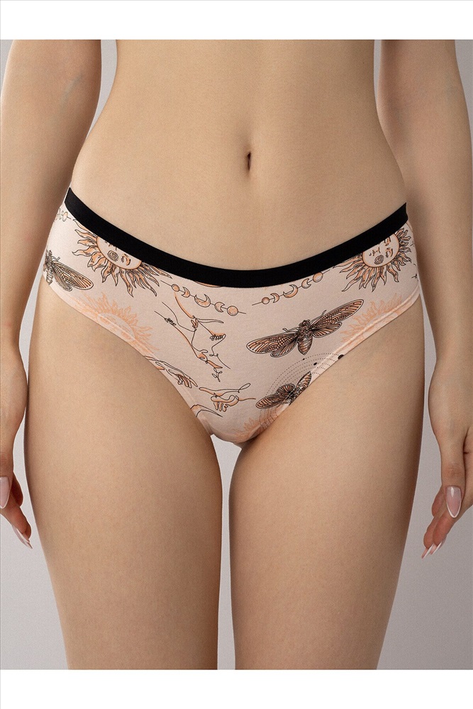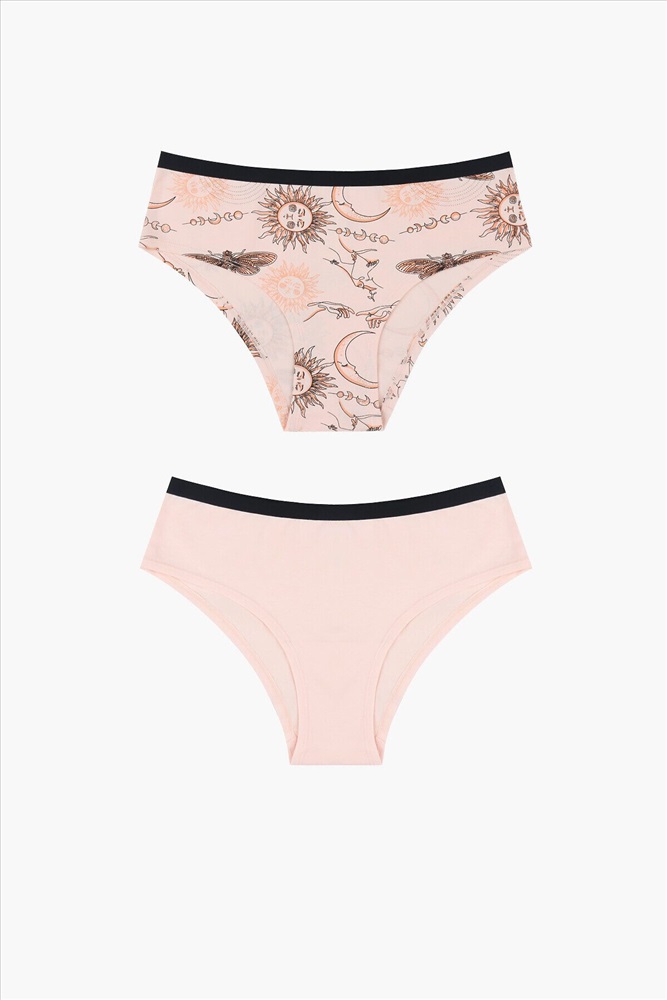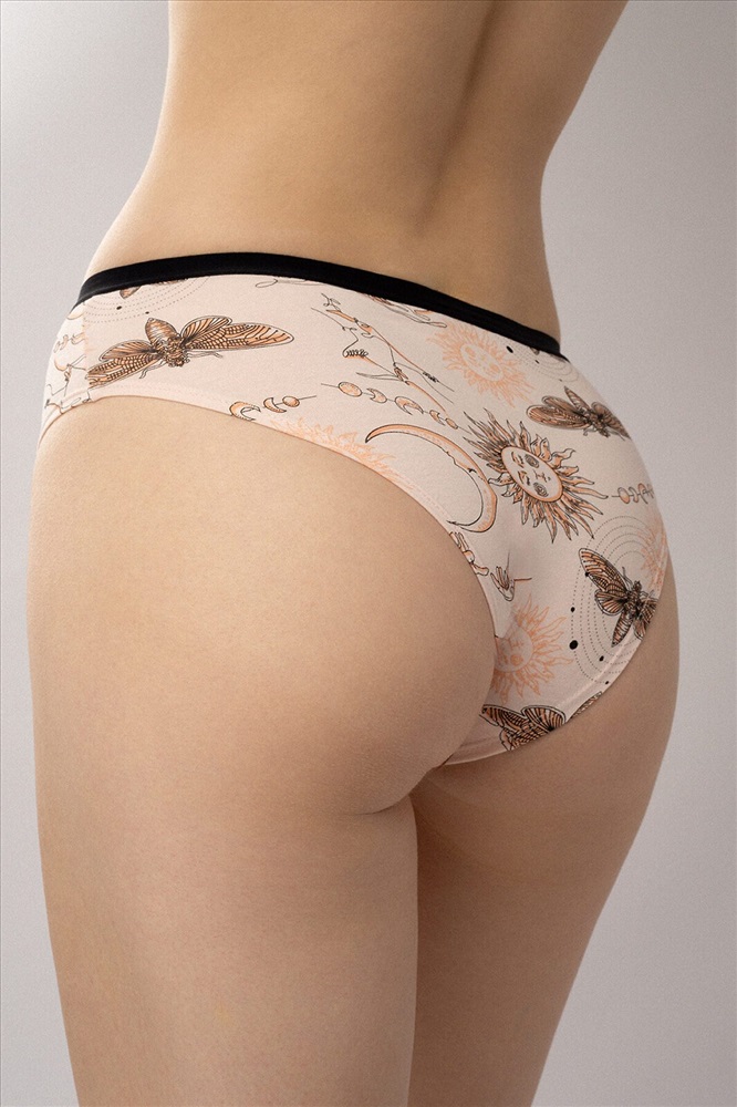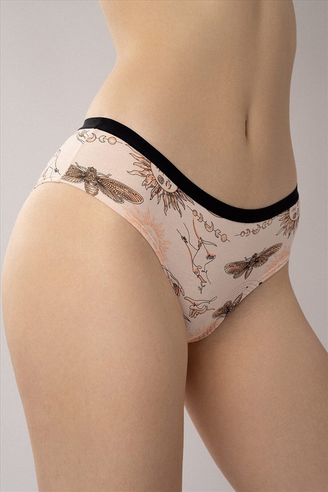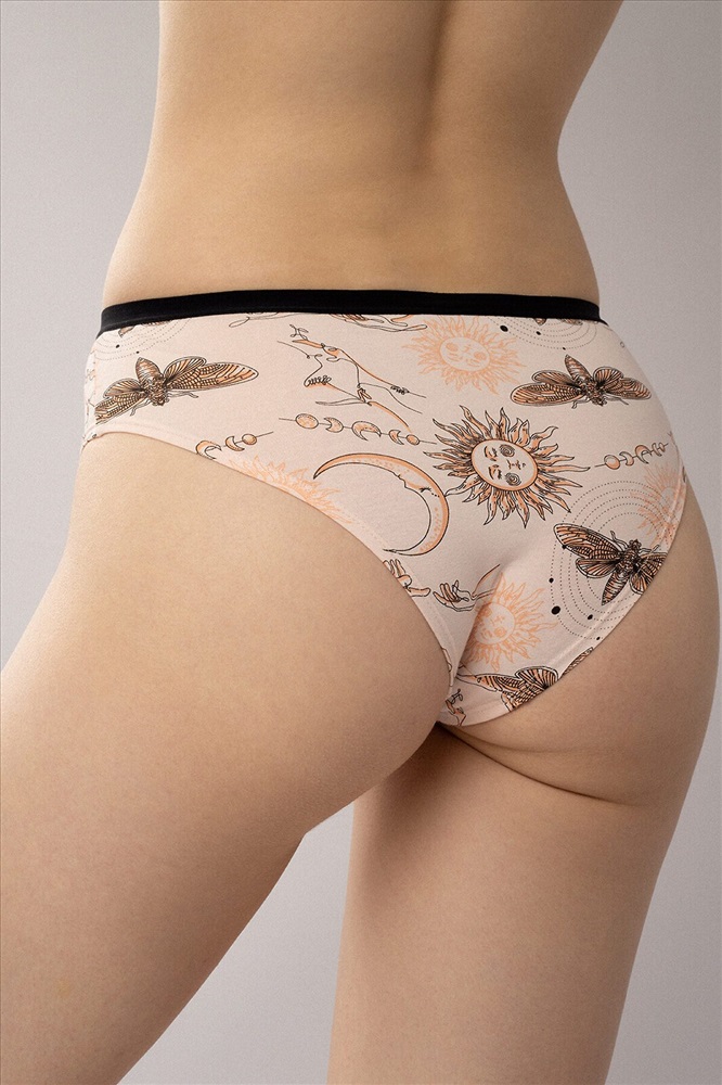 Комплект трусов-слипов от бренда Indefini — это сочетание утончённого дизайна, комфорта и натуральных материалов. В комплект входят две модели: одна с оригинальным принтом и вторая в классическом цвете, что делает его универсальным решением для повседневной носки. Особенности: ✔ Ткань: 95% хлопок, 5% эластан — мягкая, дышащая и гипоаллергенная основа, обеспечивающая комфорт даже при длительном ношении. ✔ Модель 1 (принт): Нежный персиковый фон с арт-принтом в стиле мистической символики — солнце, луна, бабочки и звёзды создают атмосферу загадочности и женственности. ✔ Модель 2 (базовая): Классическая однотонная модель в персиковом оттенке — идеальный базовый вариант для повседневного использования. ✔ Пояс: Узкая чёрная резинка по верхнему краю — акцентирует линию талии, обеспечивает надёжную фиксацию и не оставляет следов на коже. ✔ Форма: Классический крой слипов с анатомическим вырезом и мягкими швами — обеспечивает свободу движений и максимальный комфорт. ✔ Универсальная посадка: Подходит для разных типов фигур, легко сочетается с одеждой и подходит как для дома, так и для повседневного ношения.