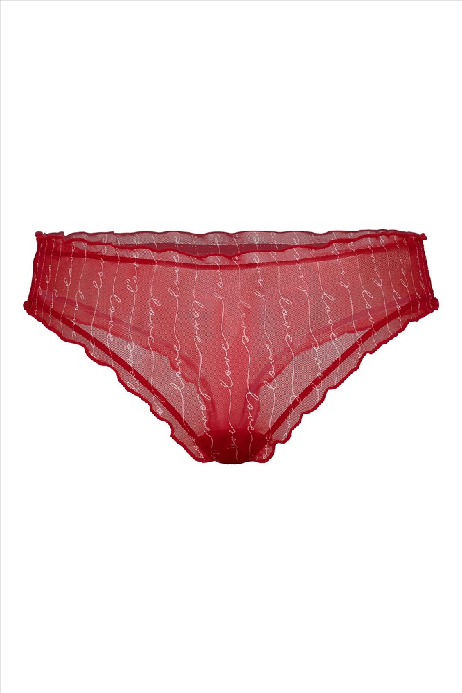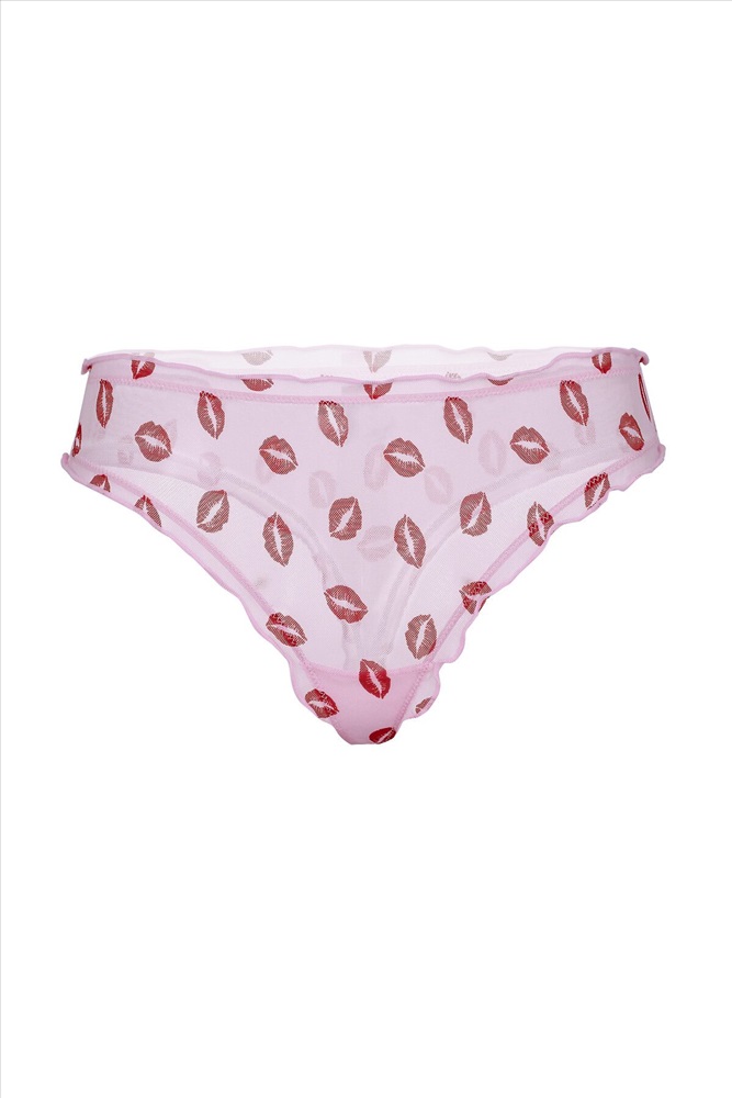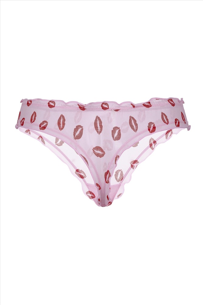 Страна производства: Россия Трусики brazilian со средней посадкой выполнены из мягкой принтованой сетки. Нежная резинка по талии и краю ножек с рюшами. Набор в подарочной коробочке с сердечком состоит из двух трусиков в разных цветах : нежно-розового с принтом "поцелуй" и красного с надписью "love". Ластовица из хлопка.