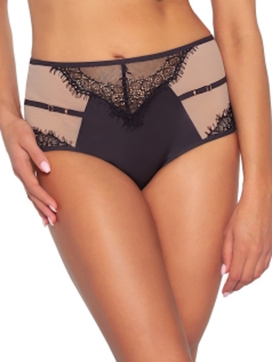 Состав: полиамид 91%, эластан 4%, хлопок 5% Трусы слип с высокой линией талии арт. 2008 в цвете Cold Espresso спереди из эластичной ткани и кружевного полотна, со вставками из телесной сетки, спинка из эластичной ткани, проймы ног украшены сеткой, сложенной вдвое, декоративные союзки регулируются по длине, фурнитура металлическая цвета меди. Ластовица из 100% хлопка. Сочетаются с бюстами 2007, 2008. Комментарии к товару