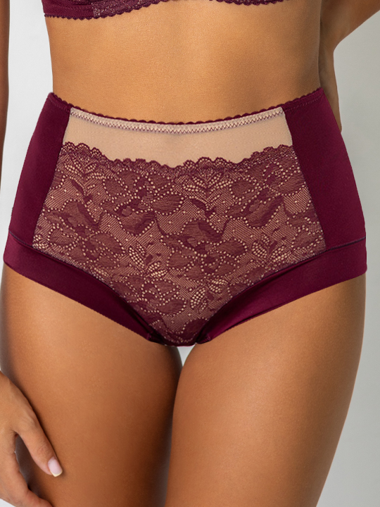 Состав: 65% Полиамид, 25% Эластан, 10% Хлопок Трусы-слип комфорт с завышенной линией талии. Выполнены из эластичного шелковистого полотна с сатиновым блеском и эластичного кружева