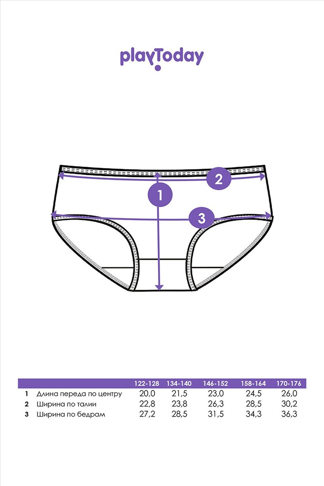 ID товара: 1186260 Сезон: Демисезон Модель трусов: Слипы Страна бренда: Германия Страна производства: Китай Набор из трёх хлопковых трусов для девочки подростка от PlayToday — комфорт, безопасность и отличная посадка на каждый день. Базовая модель, в которой всё продумано: от мягкой ткани до аккуратного кроя, обеспечивающего комфорт в школе, на прогулке и дома. Преимущества модели: + 3 пары в комплекте + мягкий хлопковый материал + анатомический крой + эластичная резинка + универсальные расцветки + гипоаллергенный состав + легкий уход Эти базовые подростковые трусы для девочек обеспечивают лёгкость и уверенность с утра до вечера. Хлопковый материал с добавлением эластана делает ткань эластичной, износостойкой и устойчивой к деформации. Даже после частых стирок бельё остаётся мягким и аккуратным и не теряет форму. Анатомический крой повторяет естественные линии тела, не сдавливает и не натирает. Мягкая резинка не оставляет следов и делает посадку особенно удобной для школьных будней и активного отдыха. Совет по стилю: комплект классических хлопковых трусов для подростков идеально дополняет хлопковые маечки и топы от PlayToday, создавая удобное и функциональное бельё на каждый день. Модель легко переносит регулярные стирки при температуре до 30°C, сохраняя форму. Представлена в размерах на рост 134–170 см — идеально подойдёт для девочек школьниц от 9 до 16 лет. Модный набор мягких хлопковых трусов для девочки от PlayToday — комфорт, в котором ребёнку удобно расти. Удачный выбор для школы, спорта и повседневной жизни. Комментарии к товару