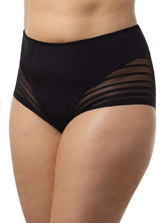 Состав: полиамид – 83%, эластан – 17%, подкладка хлопок – 100% Трусы слипы из эластичного полиамидного полотна и эластичного кружева. Мягкий эластичный материал и эргономичный крой обеспечивают свободу движений и создают ощущение максимального комфорта. Широкие боковые участки трусов закрывают верх бедра, скрывая нед
