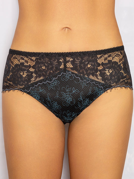 Коллекция: Olivia Состав: Полиамид – 65%, Эластан – 20%, Хлопок – 15% Трусы-слип (панти) со средней линией талии. Выполнены из эластичного принтованного полотна и эластичного кружева. Срезы по краю ножек обработаны на плоскошовной машине. Комментарии к товару