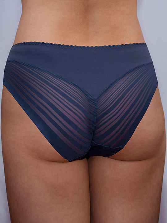 Производитель: Albina_L Трусы-слип комфорт с завышенной линией талии. Выполнены из микрофибры без блеска и эластичного кружева с орнаментом "полоска". Ультратонкое эластичное кружево, как "вторая" кожа. Идеально подходят для обтягивающих брюк и юбок.
