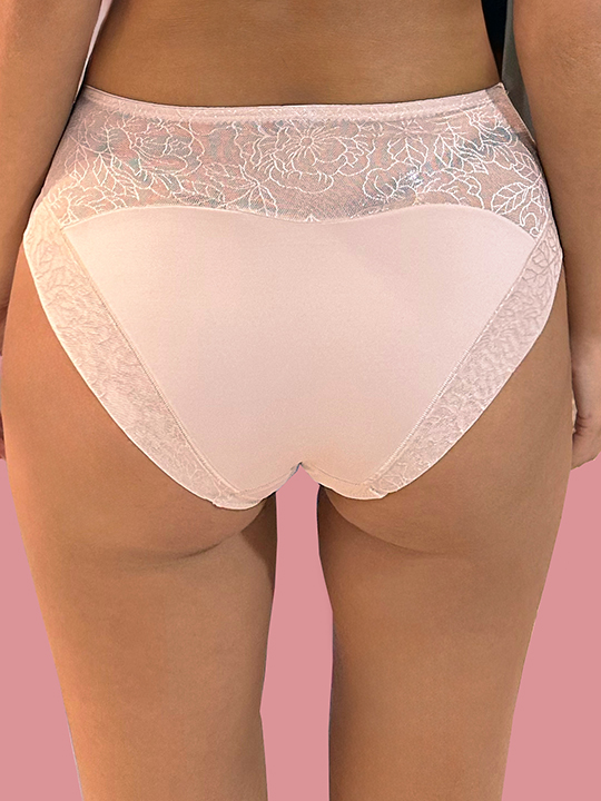 Состав: Полиамид – 65%, Эластан – 20%, Хлопок – 15% Трусы-слип комфорт со средней линией талии. Выполнены из ультратонкого, полупрозрачного эластичного кружевного полотна нового поколения и эластичной микрофибры. Срезы по краю ножек обработаны на плоскошовной машине.