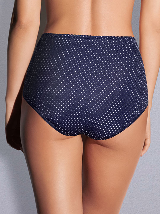 Производитель: Albina_L Маркир Миам Трусы-слип комфорт макси с завышенной линией талии. Выполнены из эластичной принтованной микрофибры в горошек и эластичного кружева. Срезы по краю ножек обработаны на плоскошовной машине.