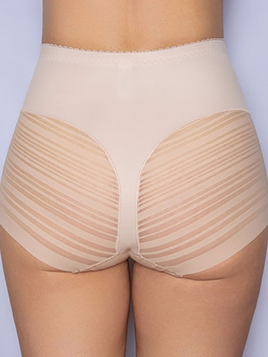 Новые утягивающие трусы с высокой линией талии, корректирующие фигуру. Благодаря высокой талии, эти трусики эффективно утягивают живот, скрывая несовершенства фигуры и делая силуэт более стройным. Трусы из функционального полотна "soft" нового поколения невероятно мягкого и бесшовного кружева с орнаментом «полоска». Особенностью 500 модели является средняя степень коррекции, которая не создает излишнего давления на кожу и не вызывает дискомфорта. Выбирая утягивающие трусы, вы получаете комфортное и эффективное корректирующее белье, которое поможет создать стройный и подтянутый силуэт.