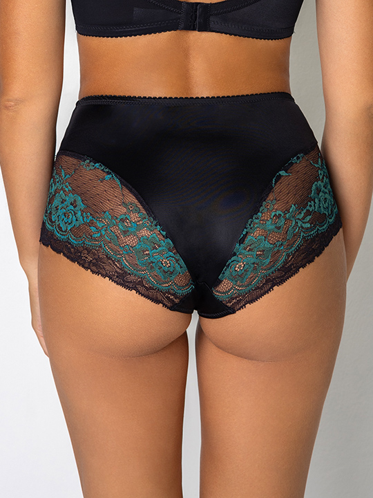 Состав: 65% Полиамид, 25% Эластан, 10% Хлопок Трусы-слип комфорт с завышенной линией талии. Выполнены из эластичного полотна с сатиновым блеском  и эластичного кружева.