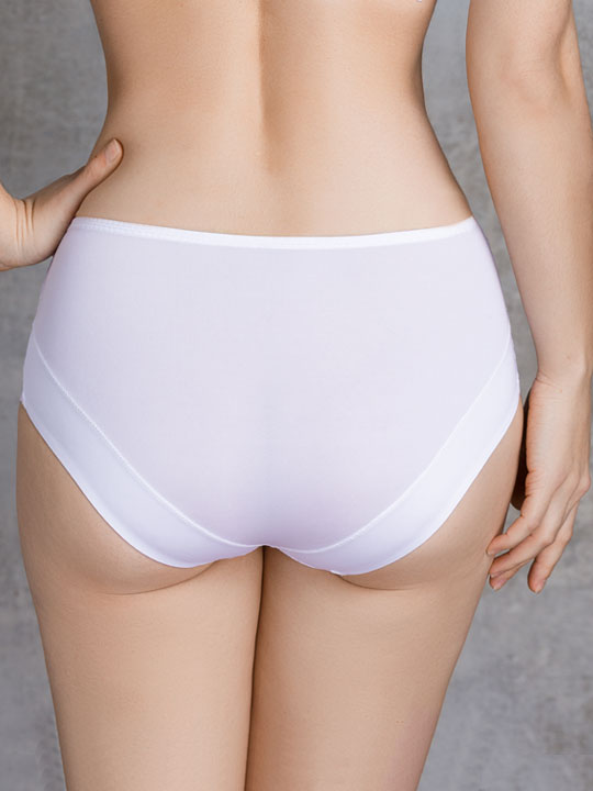 Трусики-слип с высокой линией талии. Нижняя часть передней детали выполнена из микрофибры и полностью дублирована хлопком. Верхний край передней детали со скрытой резинкой. Нижний край задней детали двухслойный, со скрытой мягкой плоской резинкой, необходимой для оптимального прилегания. Высота бока 14 см. Коллекция "Vivian".