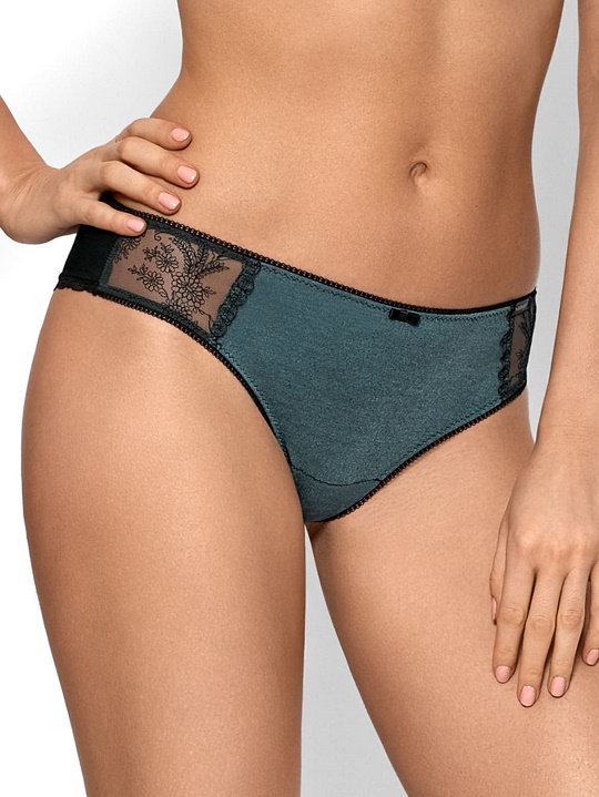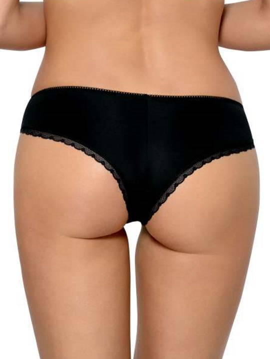 Трусики бразильянки Agnes из эластичной мягкой ткани модного цвета, спереди по бокам вставки из сетки с вышивкой, сзади из чёрного трикотажа, проймы ножек сзади украшены тонким кружевом. Ластовица из 100% хлопка. Идеально сочетаются с бюстгальтерами Agnes.