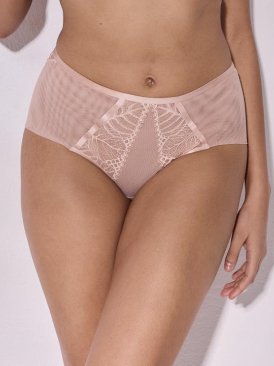 Состав: полиамид 80%, полиэстер 10%, эластан 5%, хлопок 5% Трусики классические с завышенной линией талии из коллекции Beverly выполнены из кружевного полотна и эластичной сетки, на спинке V-образный вырез, спереди продублированы сеткой. Ластовица проложена 100% хлопком. Комментарии к товару