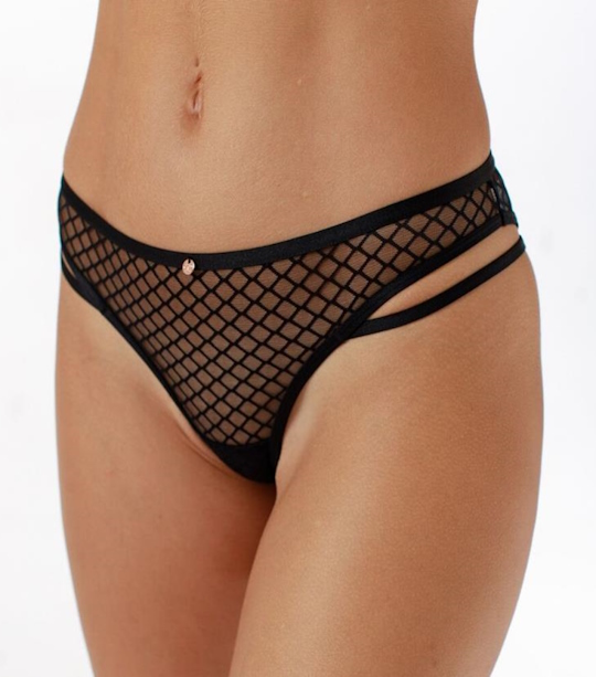 Состав: 85% ПОЛИАМИД/ 10% ЭЛАСТАН/ 5% ХЛОПОК Трусы-бразилиана со средней линией талии, выполнены из эластичной сетки, дополнительные декоративные ленты. Украшение: медальон с логотипом COQUETTE REVUE.