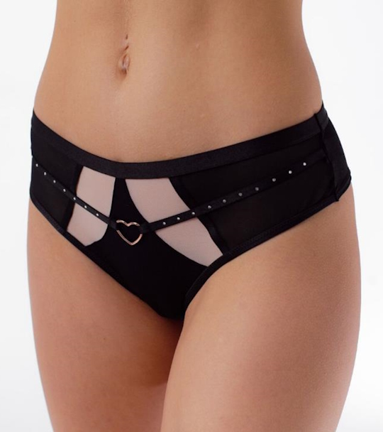 Коллекция: Diamante Состав: 85% ПОЛИАМИД/ 10% ЭЛАСТАН/ 5% ХЛОПОК Трусы-бразилиана со средней линией талии, выполнен из эластичной сетки и эластичного полотна. Дополнительные декоративные ленты со стразами. Украшение: кольцо в виде сердца. Комментарии к товару