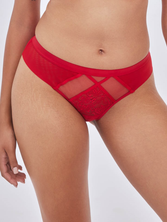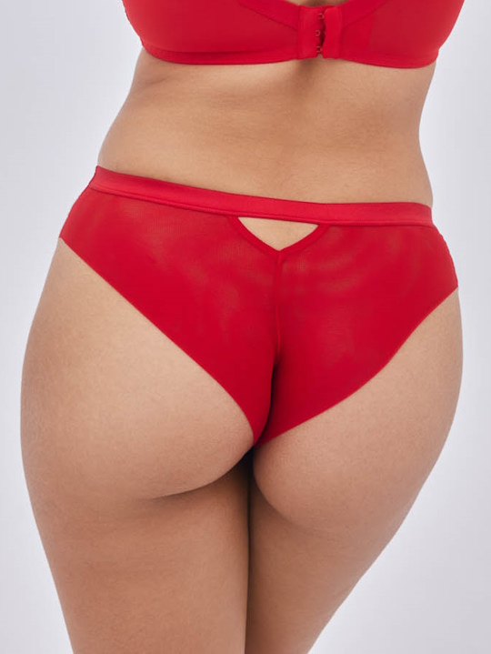 Трусики бразильяна из коллекции Chiara выполнены из сетки, сложенной вдвое, спереди кружевная вставка, на спинке V-образный вырез. Ластовица проложена 100% хлопком.