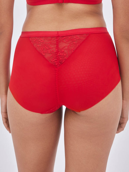 Состав: полиамид 70%, полиэстер 15%, эластан 10%, хлопок 5% Трусики классические с высокой талией из коллекции Chiara выполнены из кружевного полотна, продублированного сеткой, спинка из сетки, сложенной вдвое, с V-образной вставкой кружева, на спинке вертикально присборены. Ластовица проложена 100% хлопком. Комментарии к товару