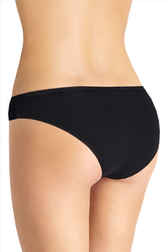 Страна производства: Россия Трусы бикини женские из эластичного хлопкового полотна. Обработка краев - ажурная резинка с фестоном. Спереди бант и вставки из кружева.