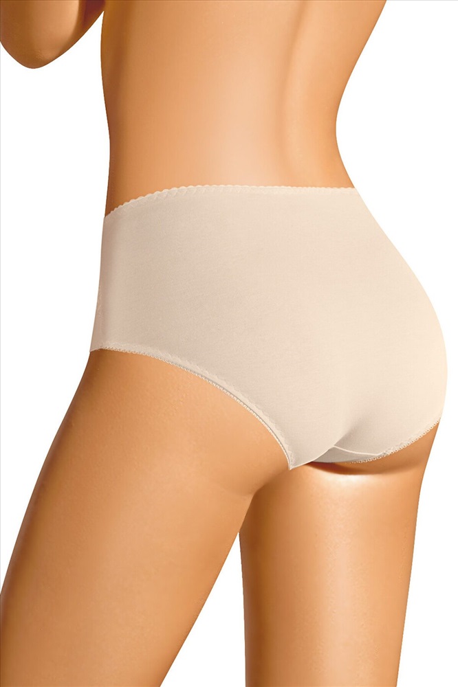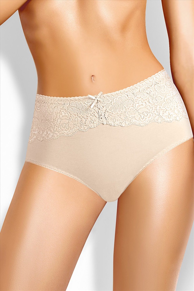 Трусы-макси женские из плотного эластичного хлопкового полотна. Обработка краев - ажурная резинка с фестоном. По переду вставки из кружева и бант.