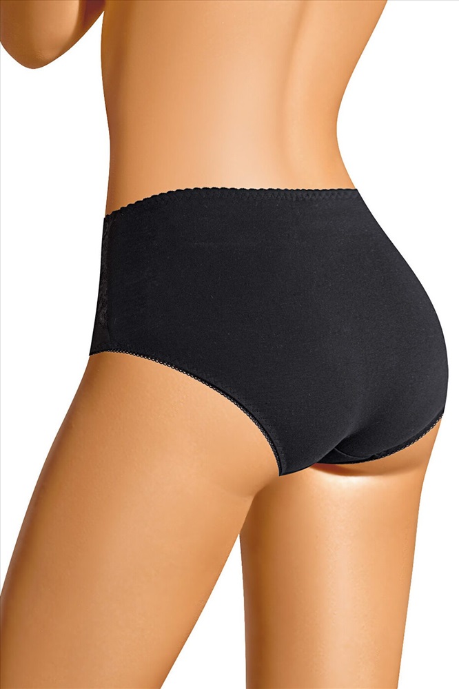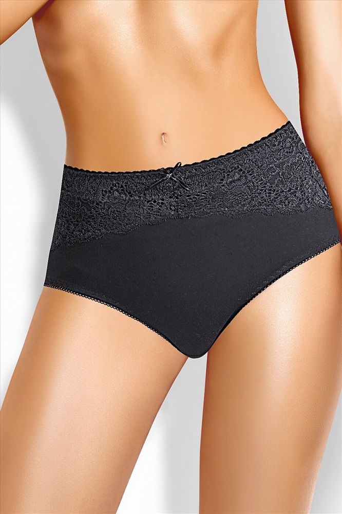 Трусы-макси женские из плотного эластичного хлопкового полотна. Обработка краев - ажурная резинка с фестоном. По переду вставки из кружева и бант.