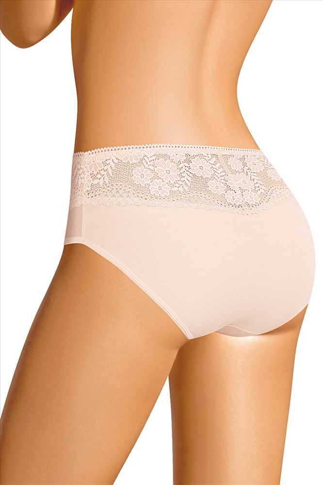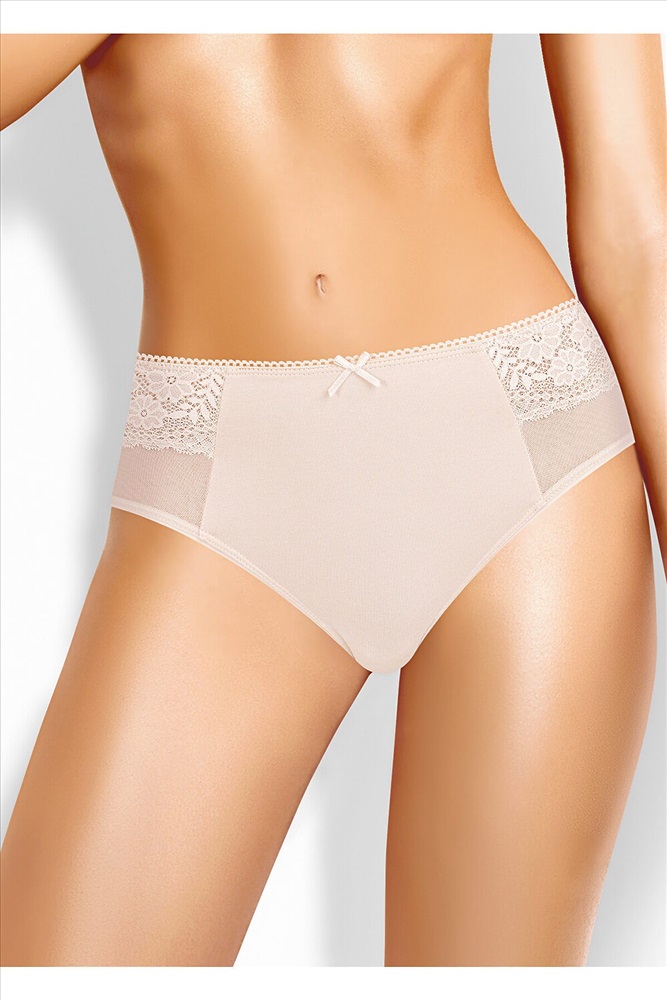 Страна производства: Россия Трусы слипы женские из эластичного хлопкового полотна. Обработка краев по талии - ажурная резинка с фестоном, по ноге - узкая окантовка. По переду и спинке вставки из кружева и сетки. По переду бант.