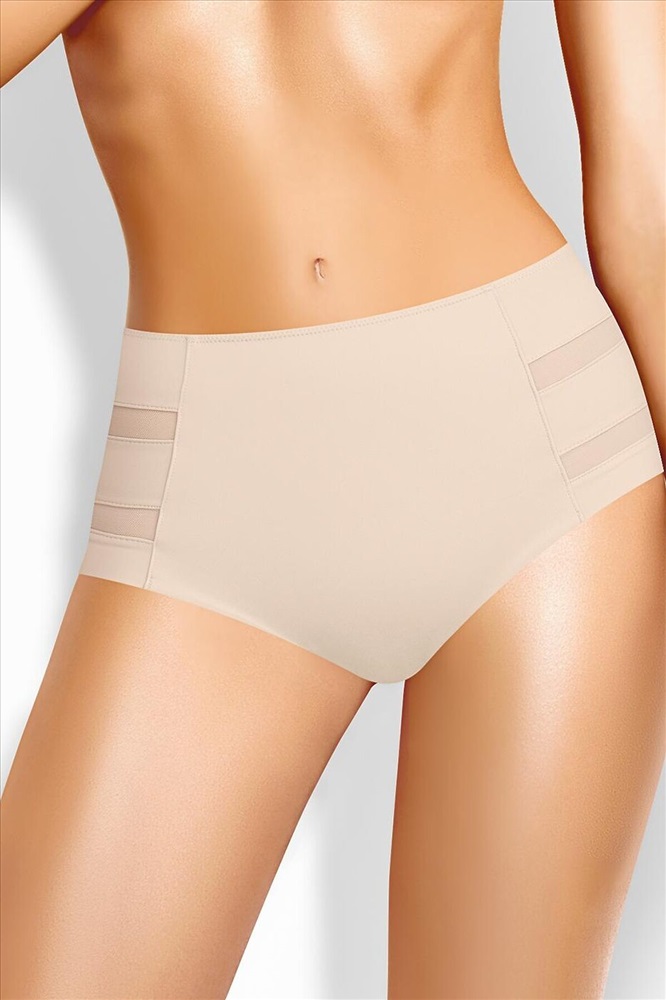Страна производства: Россия Трусы слипы с завышенной посадкой, сзади и сбоку бесшовная гладкая обработка, спереди декоративные горизонтальные вставки из плотной сетки, перед дублирован сеткой, по талии обработка с зигзагом и узкой резинкой.