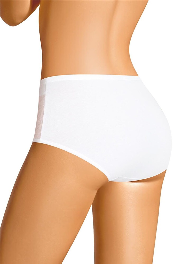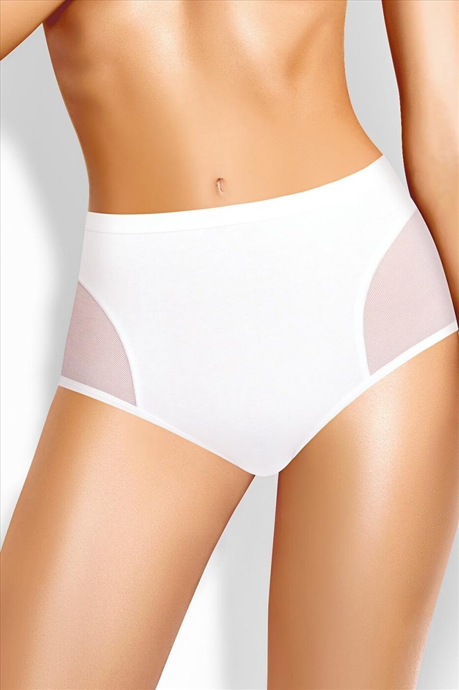 Страна производства: Россия Трусы макси женские из эластичного хлопкового полотна. Обработка краев по талии жаккардовая резинка, по ноге - полуокантовка. По переду боковые вставки из сетки, швы застилом.