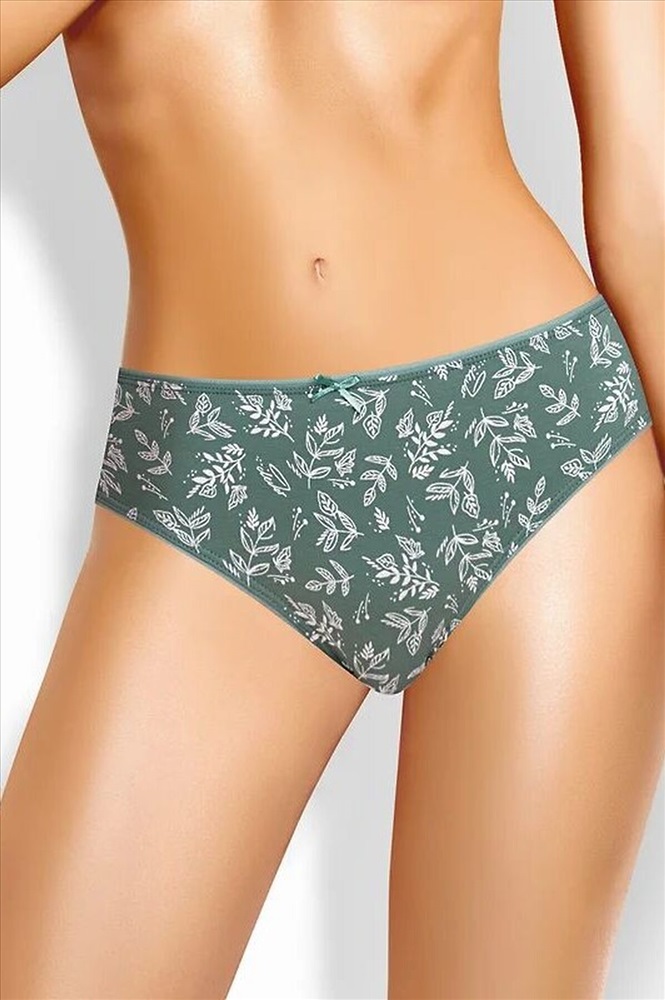 Трусы слипы женские из эластичного хлопкового полотна. Обработка краев по талии - резинка с кантом, по ноге - полуокантовка. По переду атласный бант.