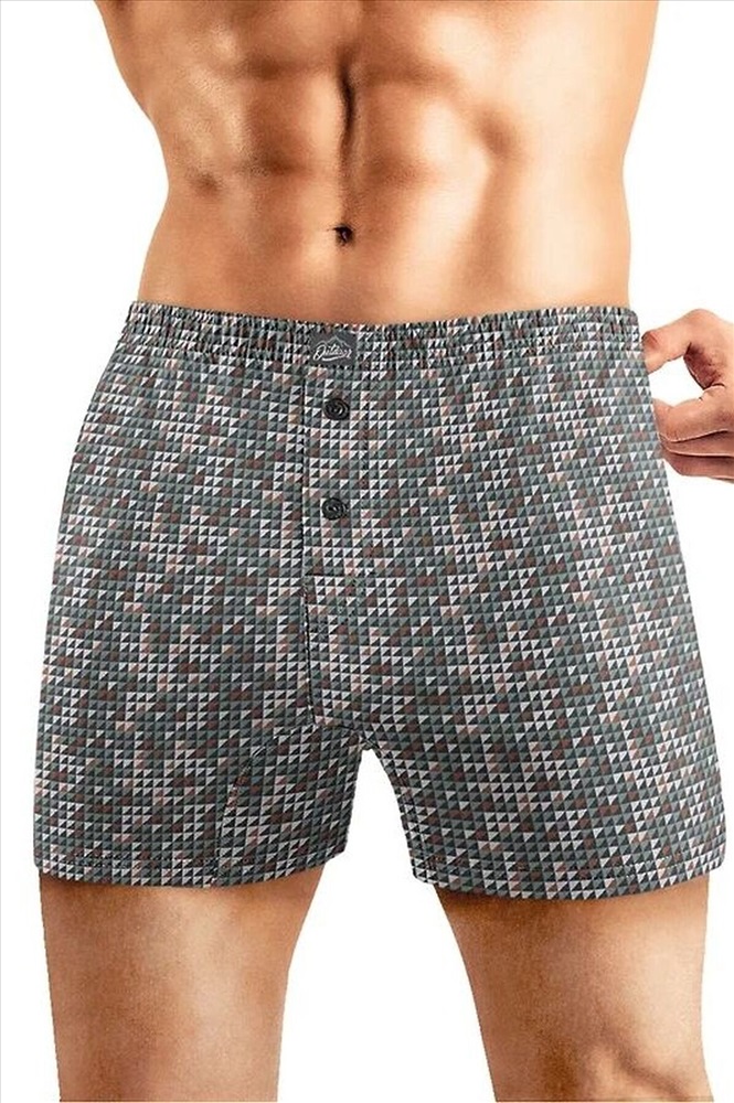 Боксеры комфортной посадки выполнены из оригинального полотна в геометричную графику. Трусы дополнены пуговицами и жаккардовым логотипом.