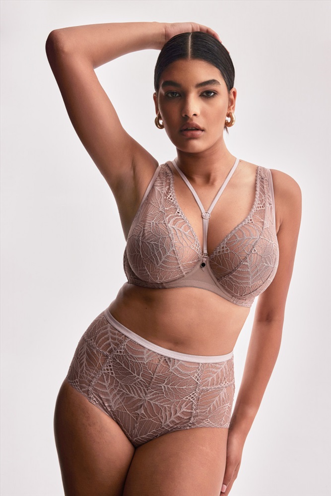 Трусики слип с высокой линией талии из коллекции Denver из эластичного кружевного полотна, спереди продублированы телесной сеткой, на спинке небольшой V-образный вырез с тонкими союзками. Ластовица из 100% хлопка. Идеально сочетаются с бюстгальтерами Denver.